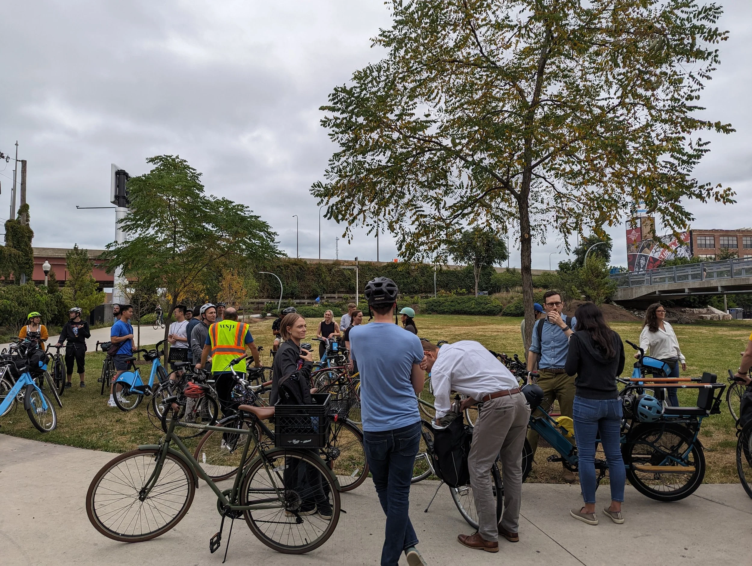 On September 7th, IL-ITE had its fourth Malty Modal Tour (this one was nicknamed the Salty Modal Tour due to the location of the tour). The bike ride showcased the different levels of bike infrastructure that exist around the Salt Shed and Wicker Park area in the City of Chicago, and included the 606 Trail, Elston Bikeway, Lincoln Yards Site, a unique Salt Shed Traffic Signal, and Augusta Bikeway to name a few, all ending at The Hurley Tap for cold beverages.